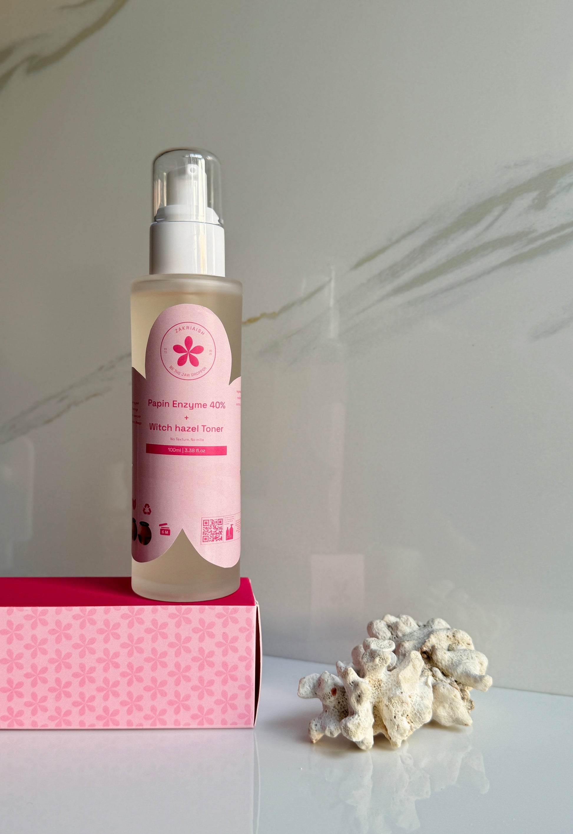 Keywords: Papain enzyme toner, milia treatment, exfoliating toner, pore tightening, natural astringent, brightening toner, papaya enzyme, smooth skin, witch hazel, cell turnover.